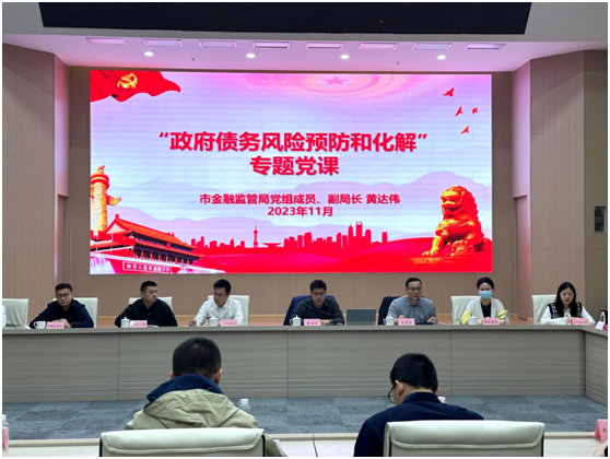 主题党课上,黄达伟副局长以贯彻习近平总书记关于金融工作重点讲话精神为主线,从地方政府债务的构成、原因、风险、预防与化解等纬度进行阐述,并结合贵州、云南、镇江等地方政府债务风险化解实例进行剖析。主题授课内容丰富,详实生动,让参会党员同志深受启发,收货满满。